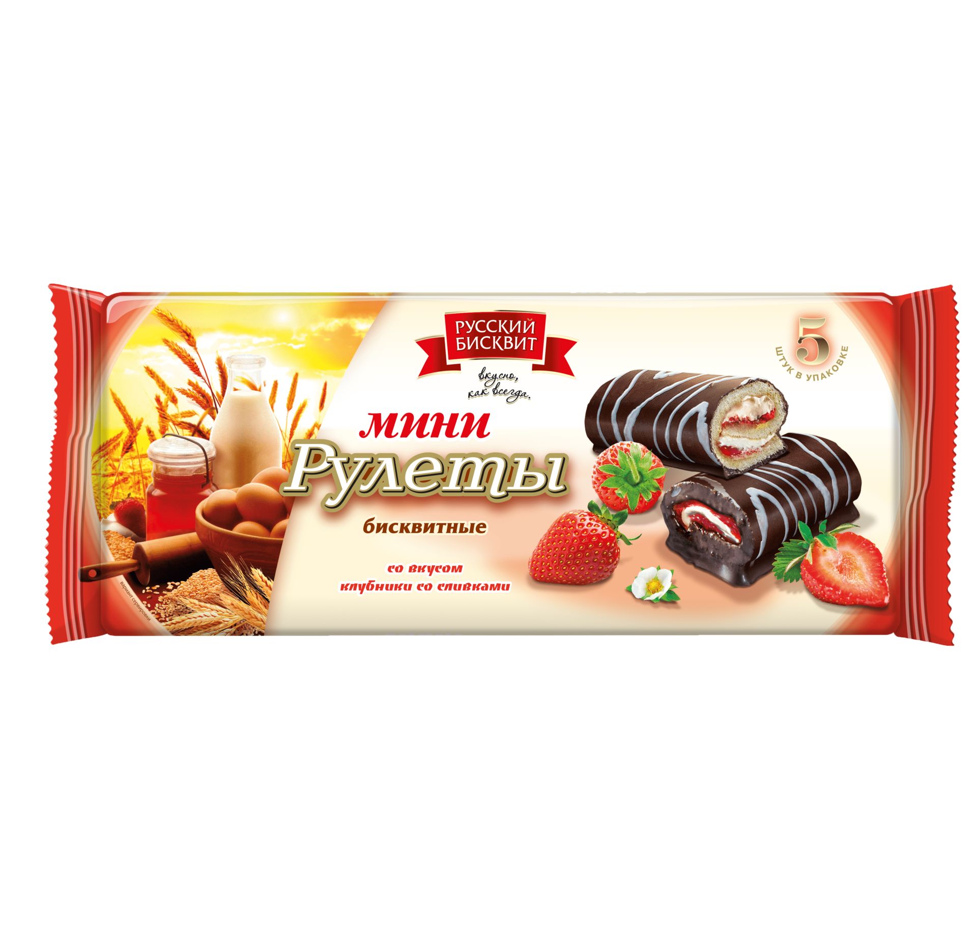 МИНИ-РУЛЕТЫ БИСКВИТНЫЕ КЛУБНИКА СО СЛИВКАМИ ТМ РУССКИЙ БИСКВИТ 175ГР