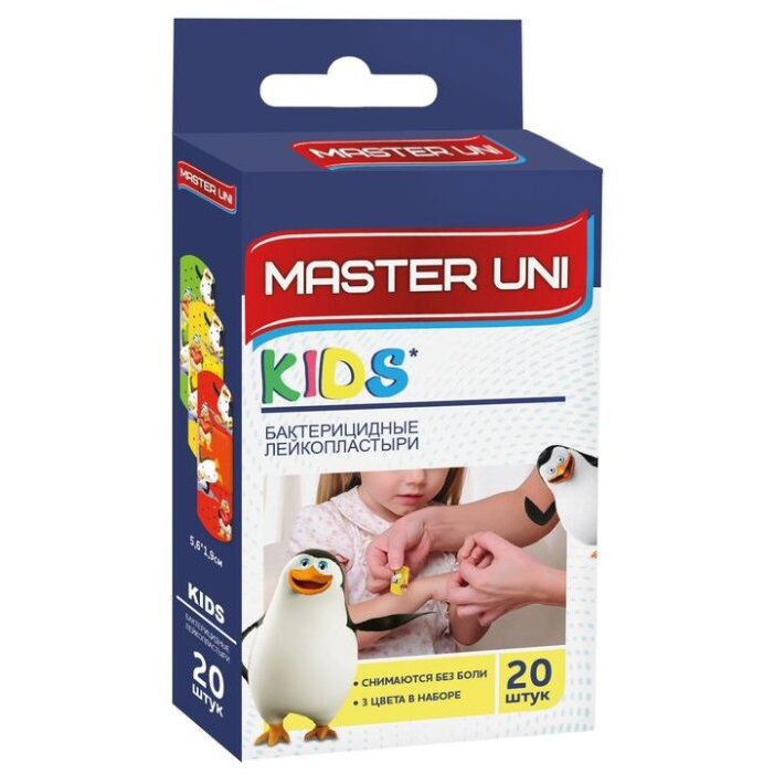 ЛЕЙКОПЛАСТЫРЬ МАСТЕР УНИ КИДС БАКТЕРИЦИДНЫЙ С РИС 20ШТ