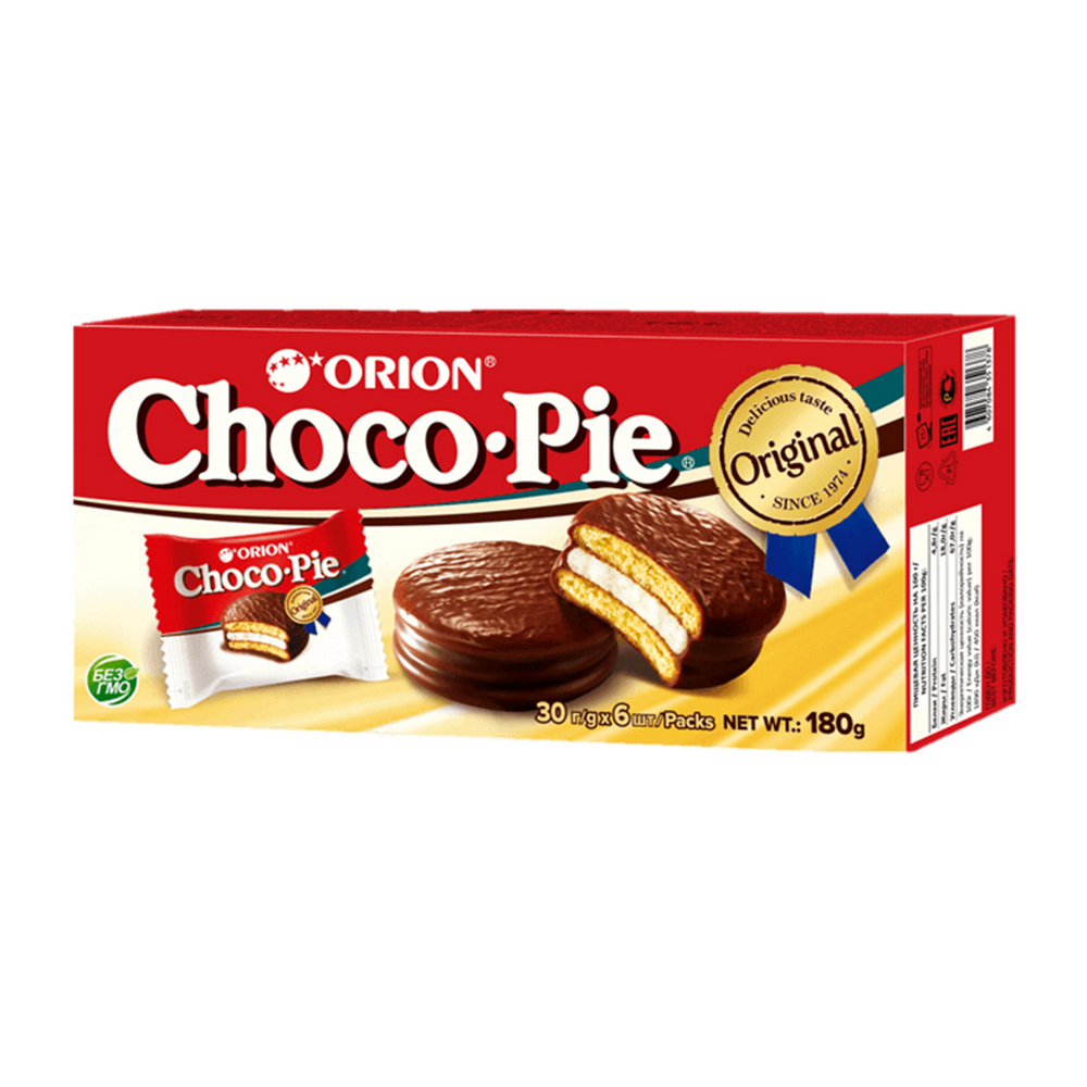 Choco Pie — нежный бисквит с уникальной начинкой из маршмеллоу, покрытый шоколадной глазурью. Возьмите с собой, чтобы полакомиться в любое время и в любом месте! Качество десерта не подлежит сомнению: запатентованная технология производства и индивидуальная упаковка позволяет Choco Pie оставаться мягким и свежим надолго. Choco Pie готовятся без консервантов, искусственных красителей и глутамата натрия. Не содержит трансжиров.