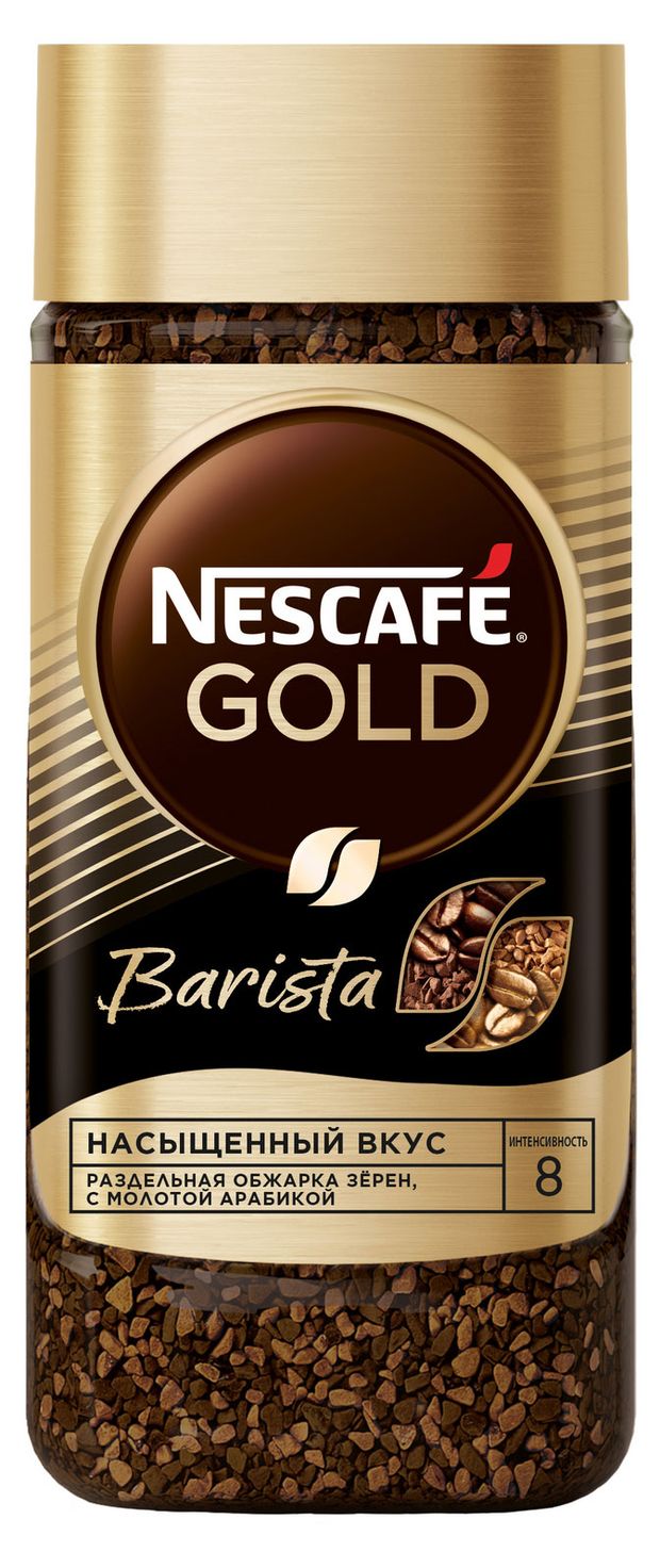 Благодаря сбалансированной комбинации растворимого и молотого кофе особого ультратонкого помола кофе Nescafe Gold Barista обладает богатым ароматом и насыщенным вкусом. Натуральный растворимый сублимированный с добавление натурального жаренного молотого кофе