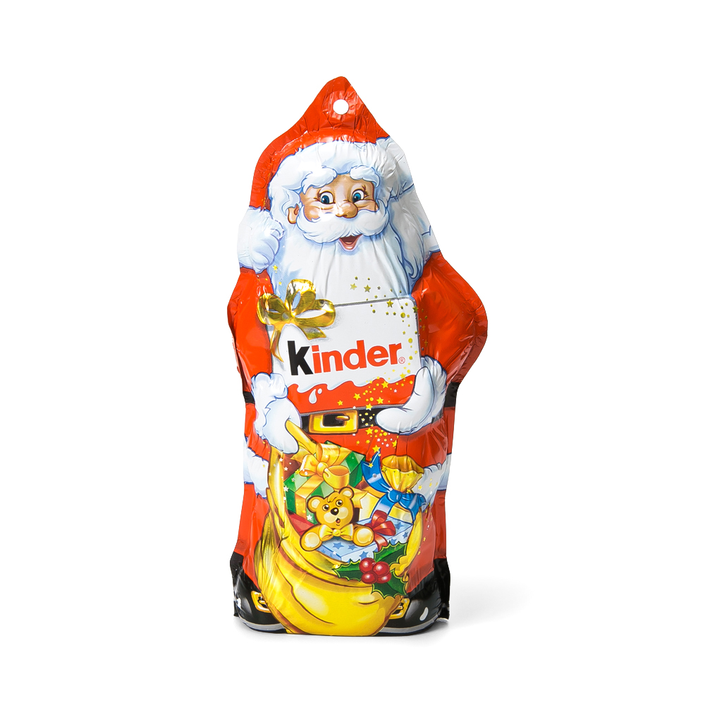 Шоколад Kinder Дед Мороз 55г – шоколадный Дед Мороз, которого можно повесить на елочку рядом с шарами и гирляндами или же преподнести самым маленьким членам семьи в качестве небольшого презента. Кондитерское изделие изготовлено из молочного шоколада, создаваемого по уникальному рецепту Kinder. Красочная упаковка из фольги позволяет сохранить свежесть, вкус и аромат десерта в течение всего срока годности. Порадуйте своего малыша оригинальным новогодним лакомством! Продукция «Киндер» производится из тщательно отобранных, высококачественных ингредиентов без добавления красителей и консервантов. Все продукты строго проверяются экспертами на каждом этапе производства.