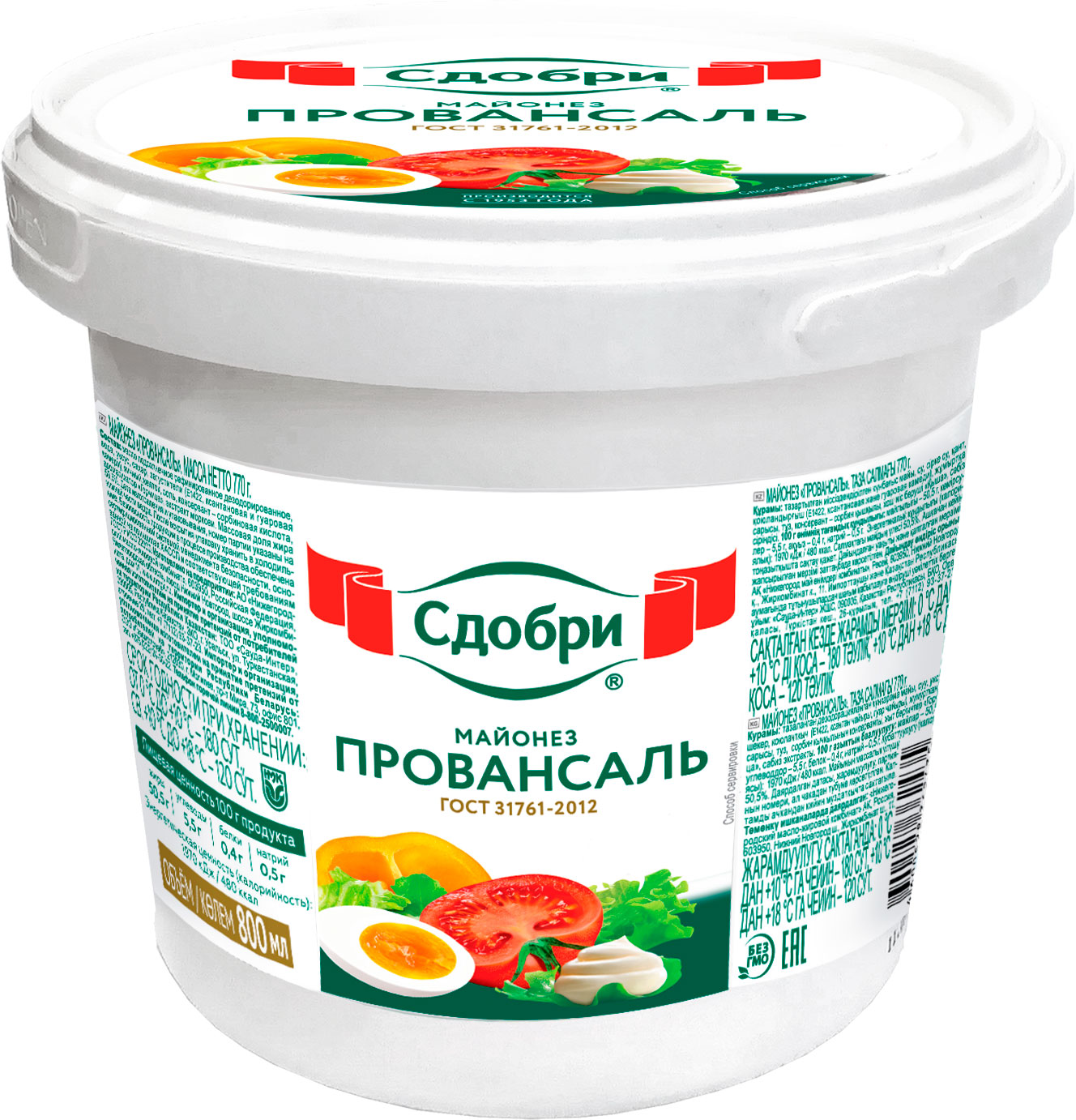 МАЙОНЕЗ СДОБРИ ПРОВАНСАЛЬ 50,5% 800ГР ВЕДРО