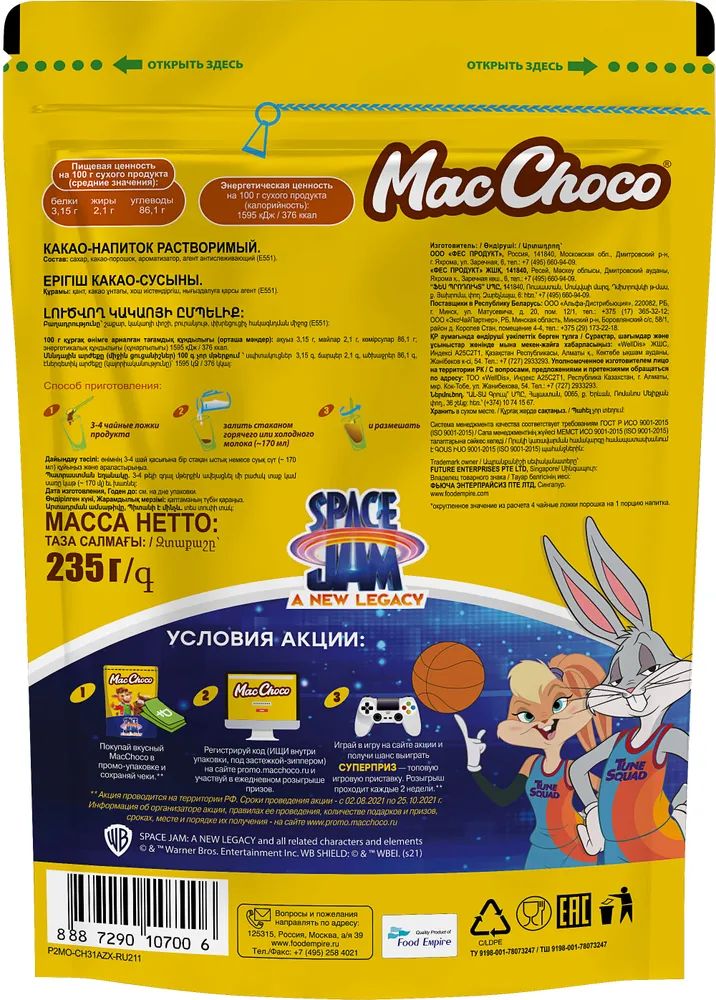 "MacChoco" - вкусный, полезный и питательный какао-напиток для детей и взрослых, который можно разводить горячим или холодным молоком.
