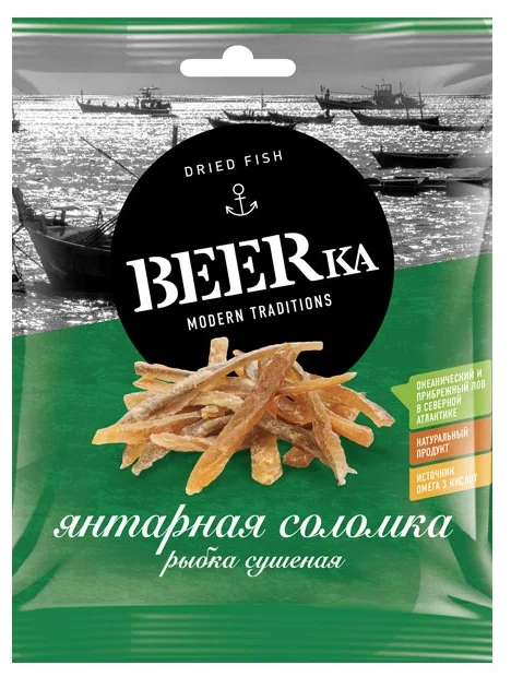 Филе путассу «BEERKA Север» Янтарная в формате соломки — это вкусная и удобная рыбная закуска, изготовленная из отборного филе морской рыбы. Продукт обладает характерным солоновато-пряным вкусом с лёгким ароматом копчения. Тонкие полоски янтарного цвета сохраняют натуральную текстуру рыбы и высокую питательную ценность. Богат источник белка, Омега-3 жирных кислот и микроэлементов. Без искусственных добавок и консервантов.