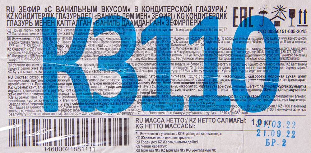 ЗЕФИР ВАНИЛЬНЫЙ В КОНДИТЕРСКОЙ ГЛАЗУРИ /ВЕС