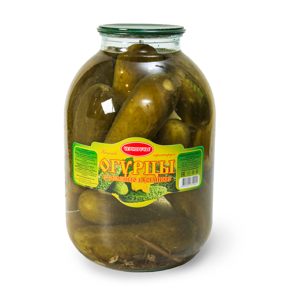 Огурцы с зеленью в заливке, без уксуса. Изготовлено из сырья, произведенного в Краснодарском крае.