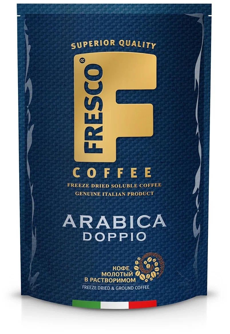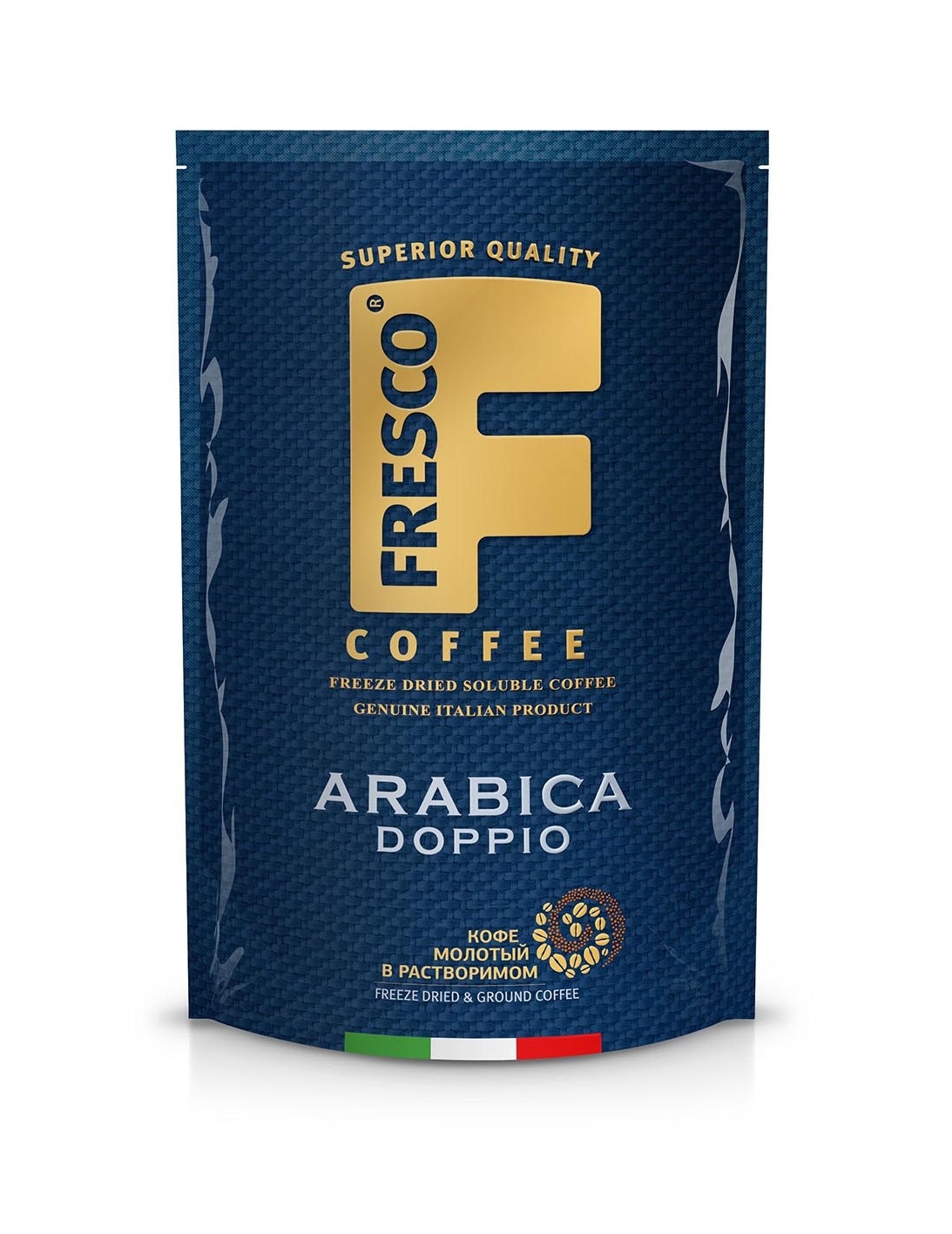 Кофе Fresco Doppio создан по уникальной технологии производства растворимого кофе высшего качества, при которой молотый жареный кофе «арабика премиум» становится неотъемлемой частью каждого кристалла растворимого сублимированного кофе, что обеспечивает неповторимый стойкий аромат сразу на этапе заваривания. Насыщенный плотный вкус и неповторимый стойкий аромат свежезаваренного кофе — уникальная особенность Fresco Doppio.