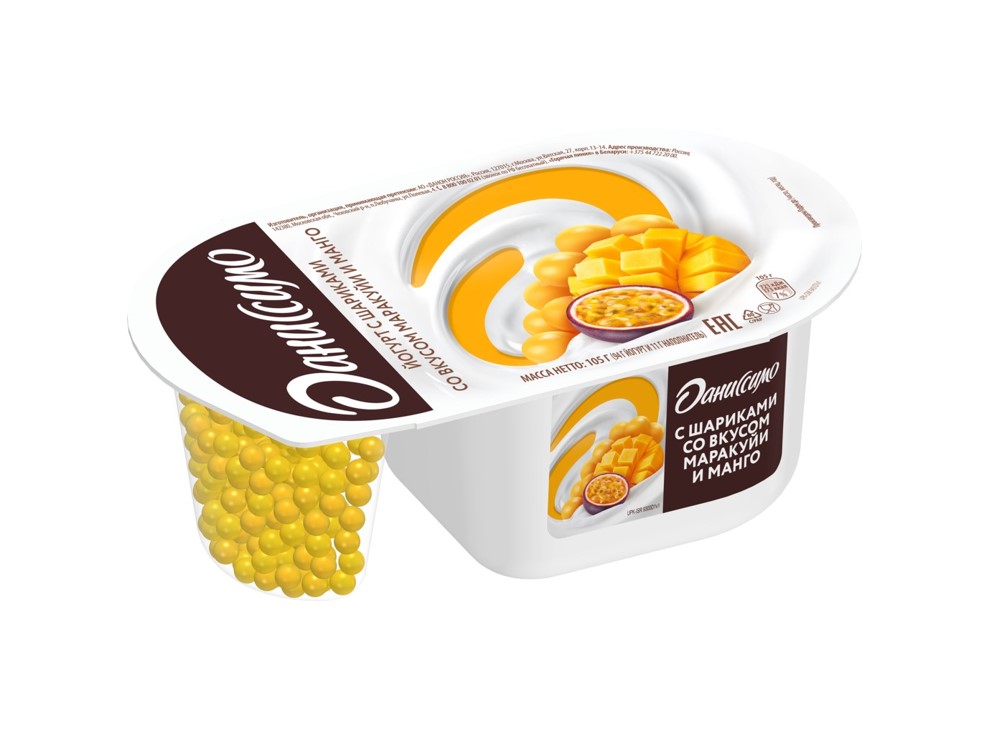 БЗМЖ ЙОГУРТ ДАНИССИМО ФАНТАЗИЯ 6,9% ШАРИКИ/МАНГО/МАРАКУЙЯ 105Г