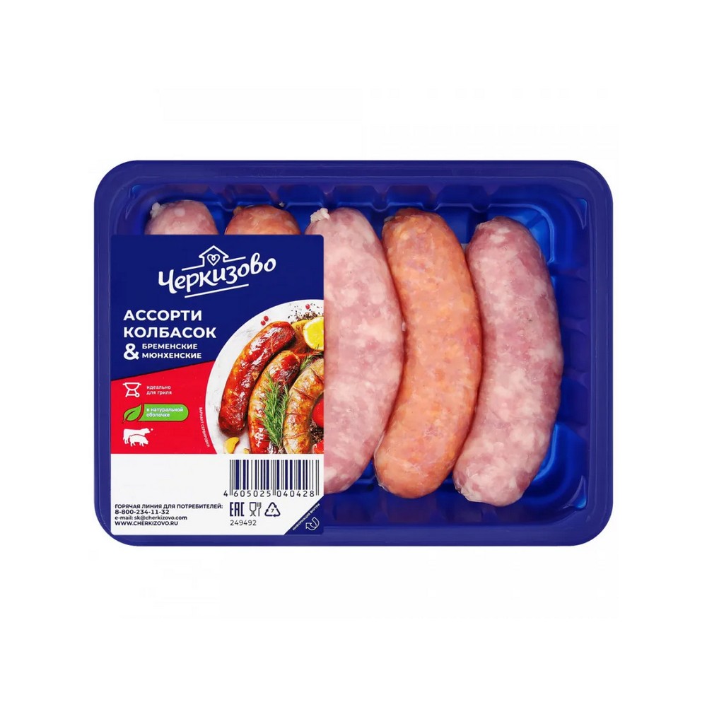 Колбаски Бременские и Мюнхенские ассорти от торговой марки ЧЕРКИЗОВО – охлажденный полуфабрикат из свинины. Его можно пожарить на сковороде, гриле или открытом огне. Нежные колбаски отлично сочетаются с самыми разнообразными салатами и гарнирами.