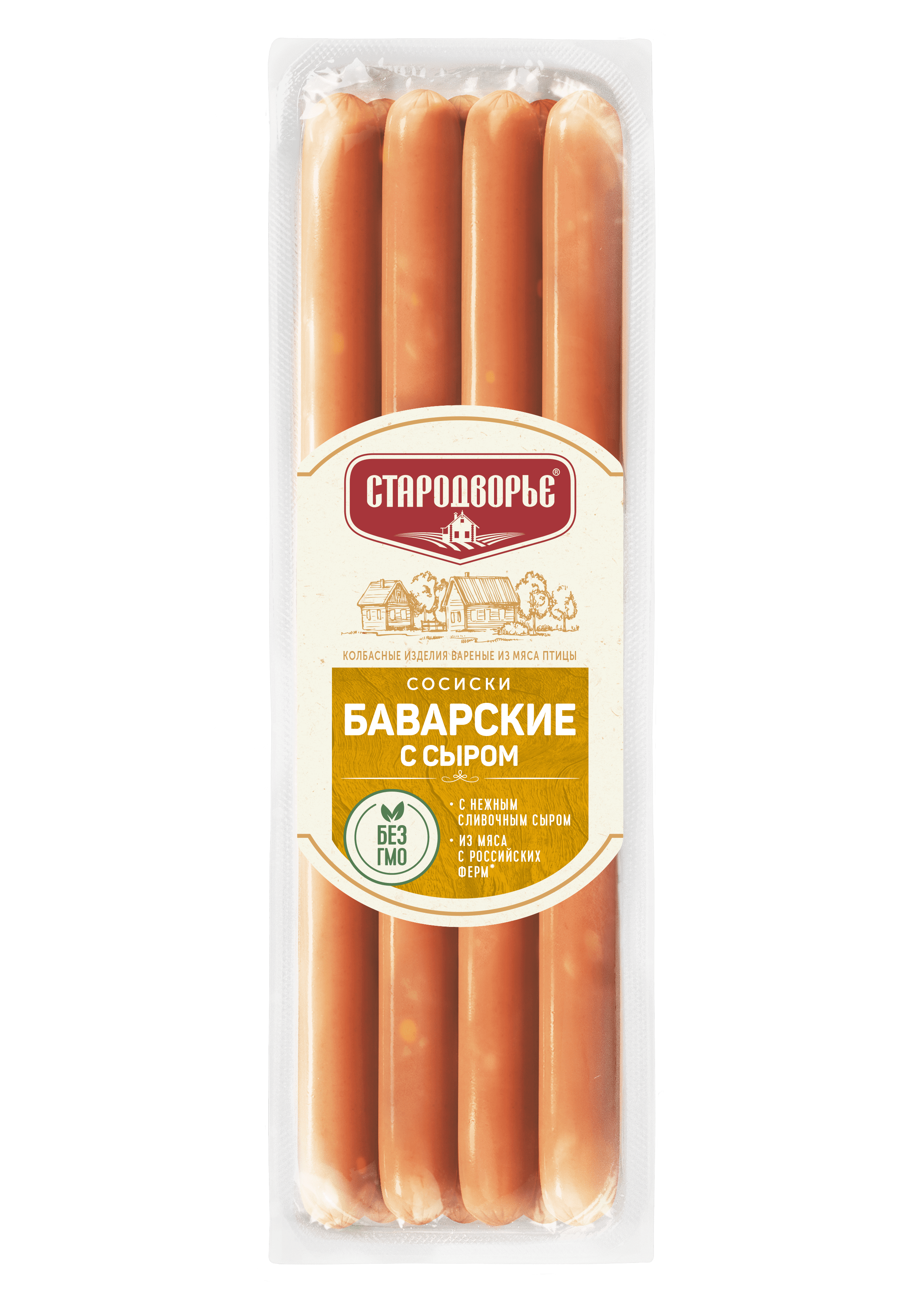СОСИСКИ БАВАРСКИЕ С СЫРОМ ТМ СТАРОДВОРЬЕ 350ГР