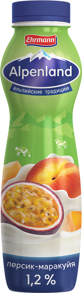 Напиток йогуртный пастеризованный с ярким вкусом персика и маракуйи Alpenland