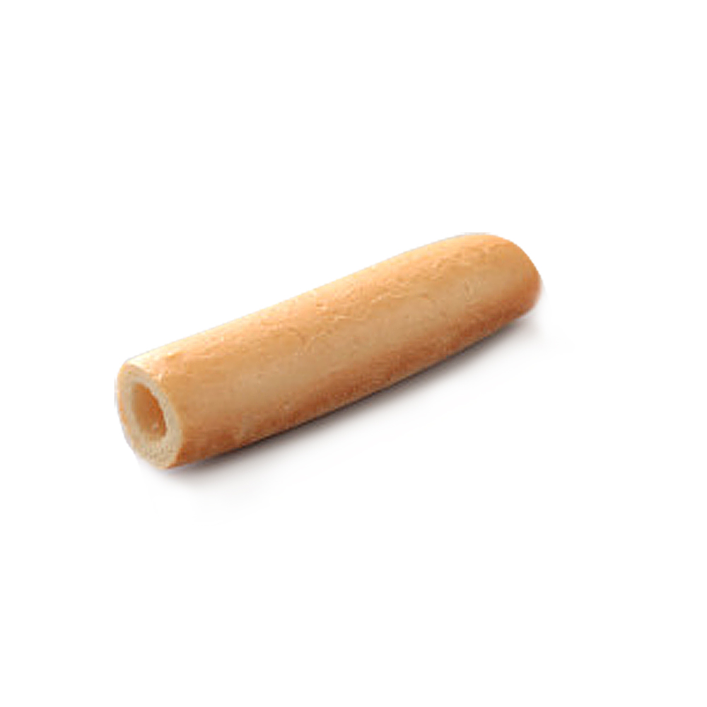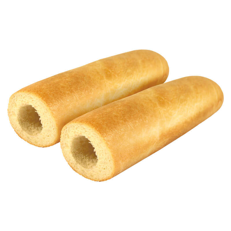 мягкий пшеничный багет с высверленной серединкой. Если готовый хот-дог слегка обжарить на гриле, корочка багета станет хрустящей, как у свежевыпеченного.
