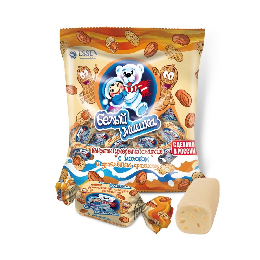 КОНФЕТЫ МХ БЕЛЫЙ МИШКА С ДРОБЛЕННЫМ АРАХИСОМ 500ГР