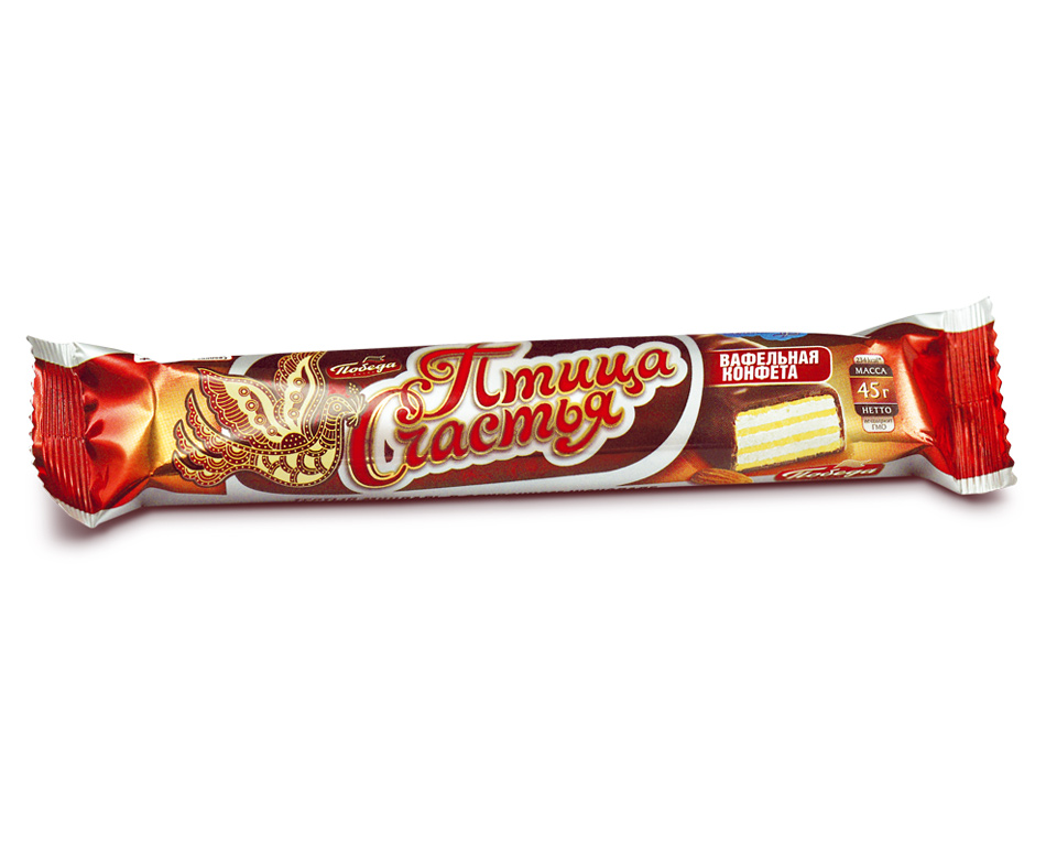 КОНФЕТА ВАФ ПТИЦА СЧАСТЬЯ С ТЕРТЫМ МИНДАЛЕМ ПОБЕДА 45ГР