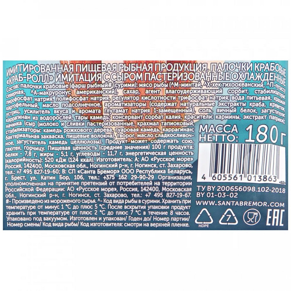ПАЛОЧКА КРАБОВАЯ РУССКОЕ МОРЕ "КРАБ-РОЛЛ" С СЫРОМ ПАСТ.ОХЛ. 50Г