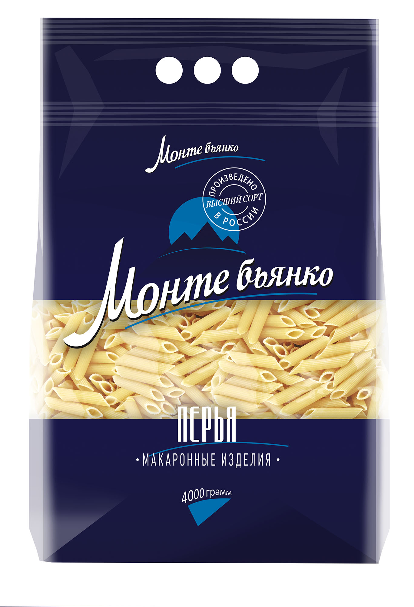 «Монте бьянко» представляют традиционный ассортимент макаронных изделий из мягких сортов пшеницы. Используются лучшие сорта муки группы В, что можно заметить даже по внешнему виду изделий – цвет макарон скорее желтоватый, чем бело-серый как у большинства макаронных изделий из мягких сортов пшеницы. При производстве не используются красители и ароматизаторы..
