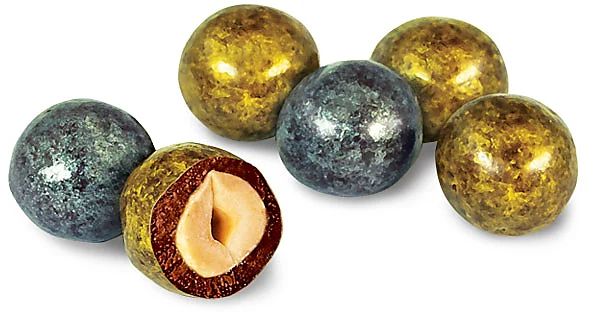 Драже фундук - цельный обжаренный лесной орех в молочно-шоколадной и золотисто-серебристой глазури.