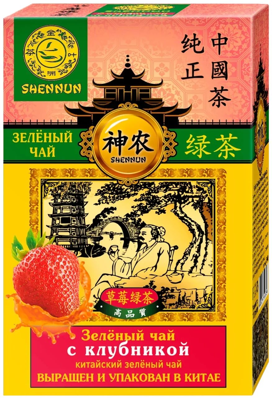 ЧАЙ ШЕННУН ЗЕЛЕНЫЙ КРУПНОЛИСТОВОЙ С КЛУБНИКОЙ 100ГР