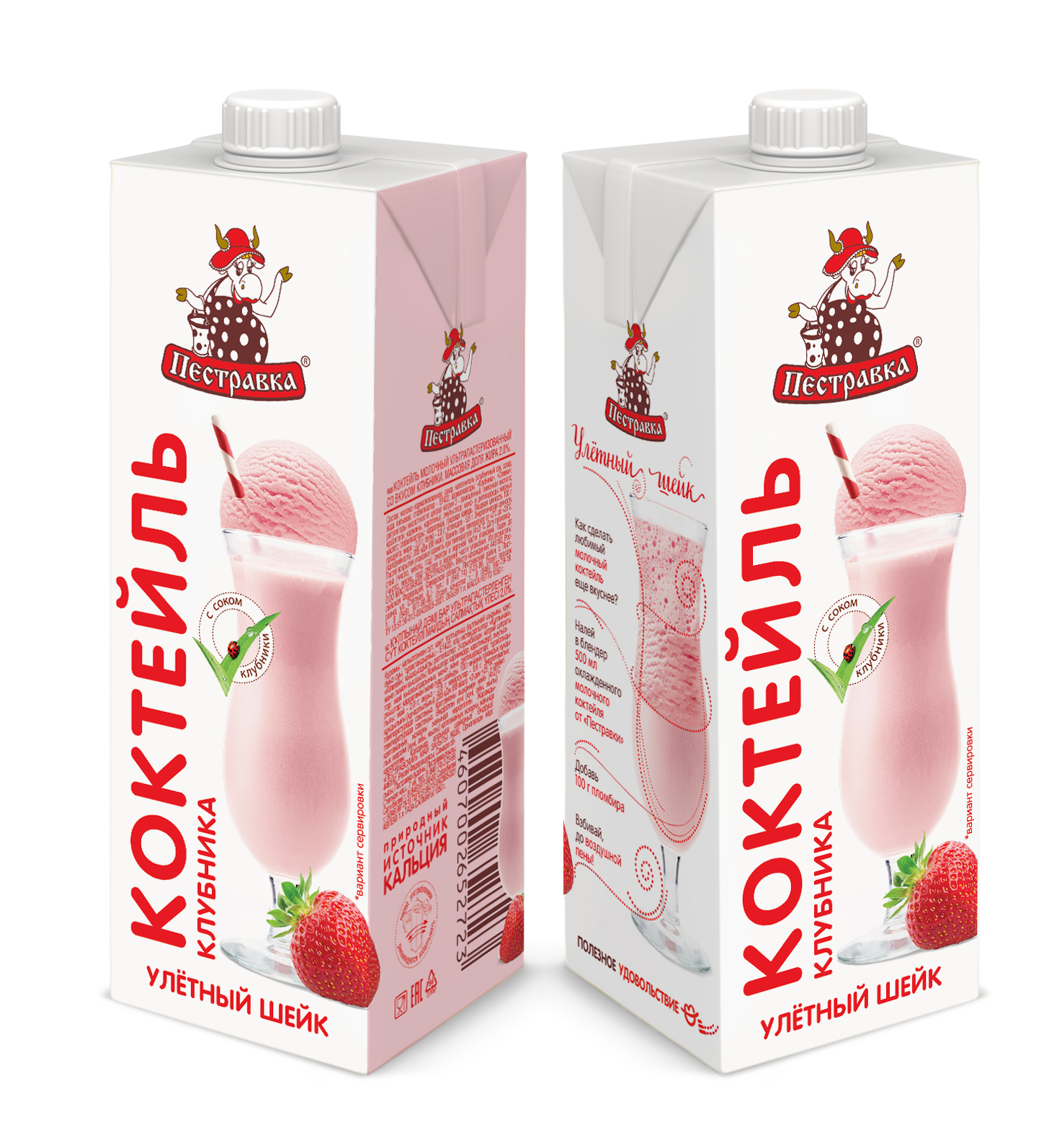 БЗМЖ КОКТЕЙЛЬ МОЛОЧНЫЙ ПЕСТРАВКА КЛУБНИКА 2% 1Л ТБА