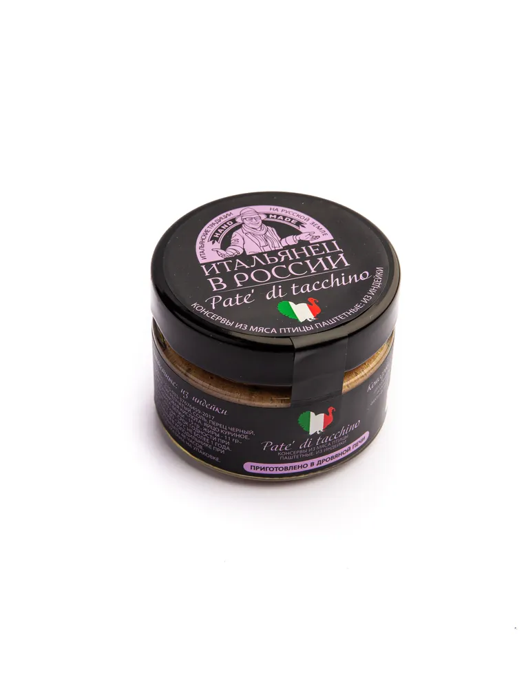 Паштет «Итальянец в России» из индейки с травами — это нежный мясной продукт с утончённым вкусом и изысканным ароматом средиземноморских трав. Приготовлен из отборного мяса индейки с добавлением натуральных специй и ароматных трав, что придаёт паштету сбалансированный вкус и деликатную текстуру. Идеально подходит для лёгкого завтрака или изысканной закуски.