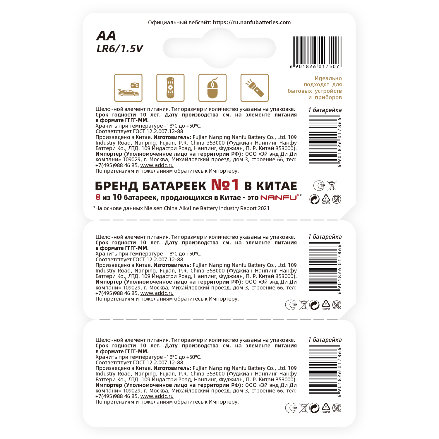 БАТАРЕЙКА NANFU ЩЕЛОЧНАЯ LR6 АА 1ШТ