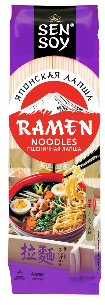 Пшеничная лапша Рамен "Сен Сой" — это традиционная основа японской кухни, изготовленная по классической технологии из пшеничной муки высокого качества. Обладает приятной, упругой текстурой и нейтральным вкусом, что делает её идеальной для супов, WOK-блюд и лапши по-азиатски. Быстро готовится, хорошо впитывает соусы и бульоны, оставаясь эластичной и нежной после варки. Не содержит искусственных добавок и красителей.