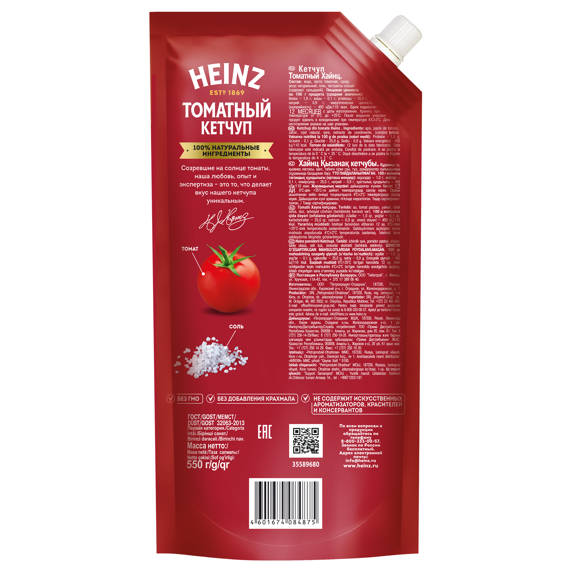 КЕТЧУП ХАЙНЦ ТОМАТНЫЙ 550Г Д/П