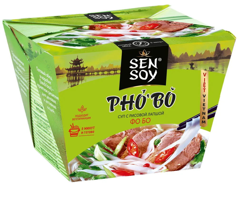 Sen Soy Рисовая лапша суп PHO BO 125г - это не просто продукт, это возможность познакомиться с традиционным вьетнамским блюдом и насладиться его богатым вкусом и ароматом. Попробуйте сегодня и убедитесь сами!