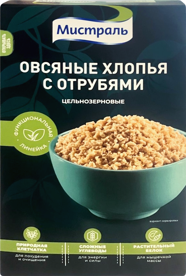 ХЛОПЬЯ ОВСЯНЫЕ С ОТРУБЯМИ МИСТРАЛЬ 400ГР