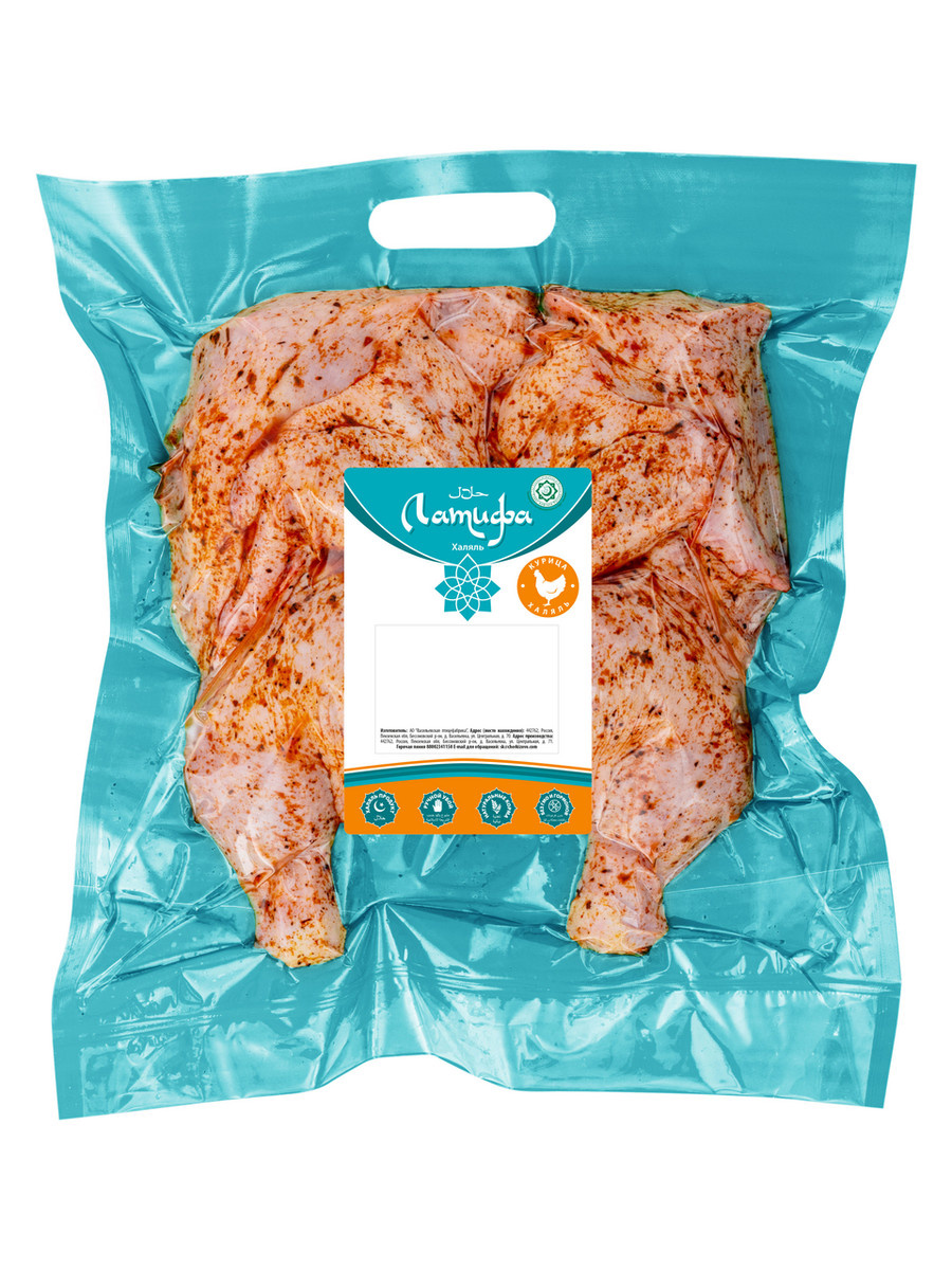 Полуфабрикаты из мяса цыплят-бройлеров кусковые мясокостные в специях: цыпленок "Табака" охлажденный. Упаковано под вакуумом