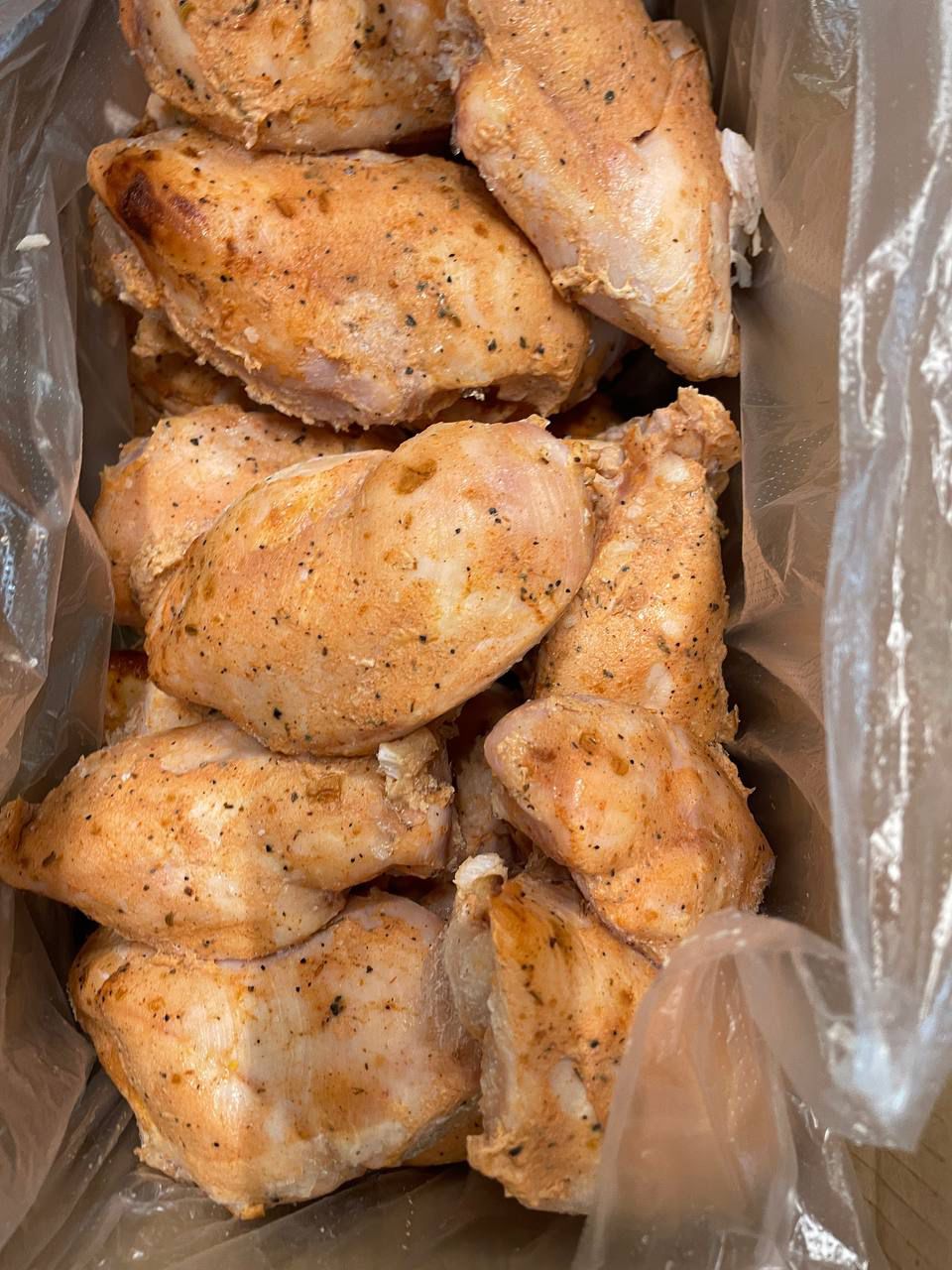 Филе грудки со специями готовое кулинарное изделие замороженное. Расфасовано в полиэтиленовый пакет по 5 кг