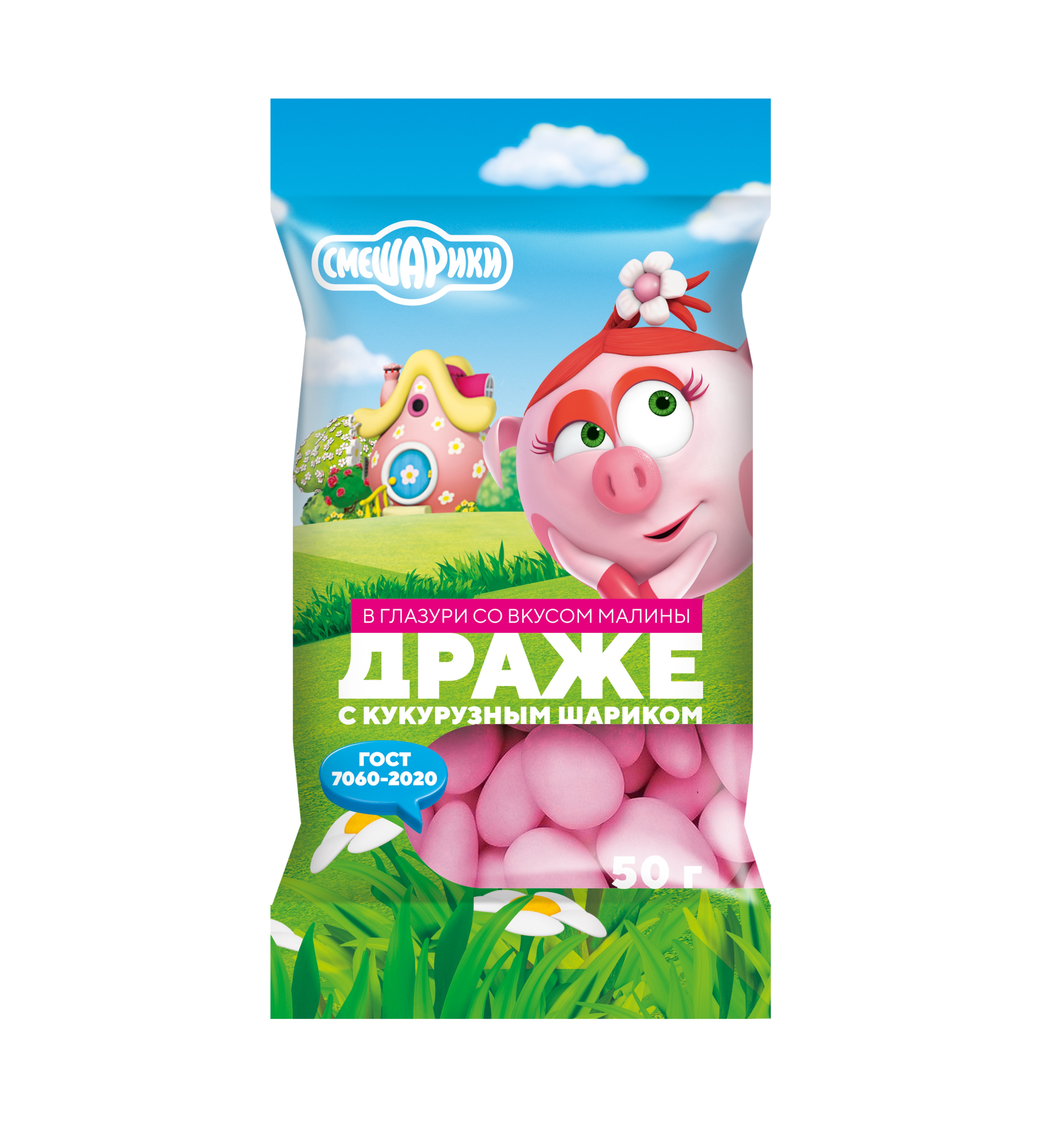 ДРАЖЕ СМЕШАРИКИ С КУКУРУЗНЫМИ ШАРИКАМИ СО ВКУСОМ МАЛИНЫ ГЛАЗИР 50ГР
