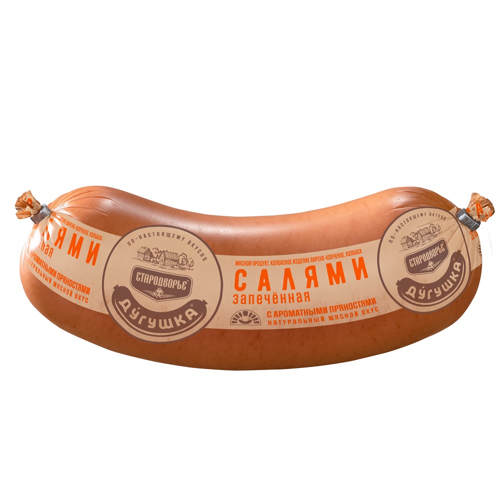 КОЛБАСА САЛЯМИ ЗАПЕЧЕННАЯ В/К ДУГУШКА СТАРОДВОРЬЕ 600ГР