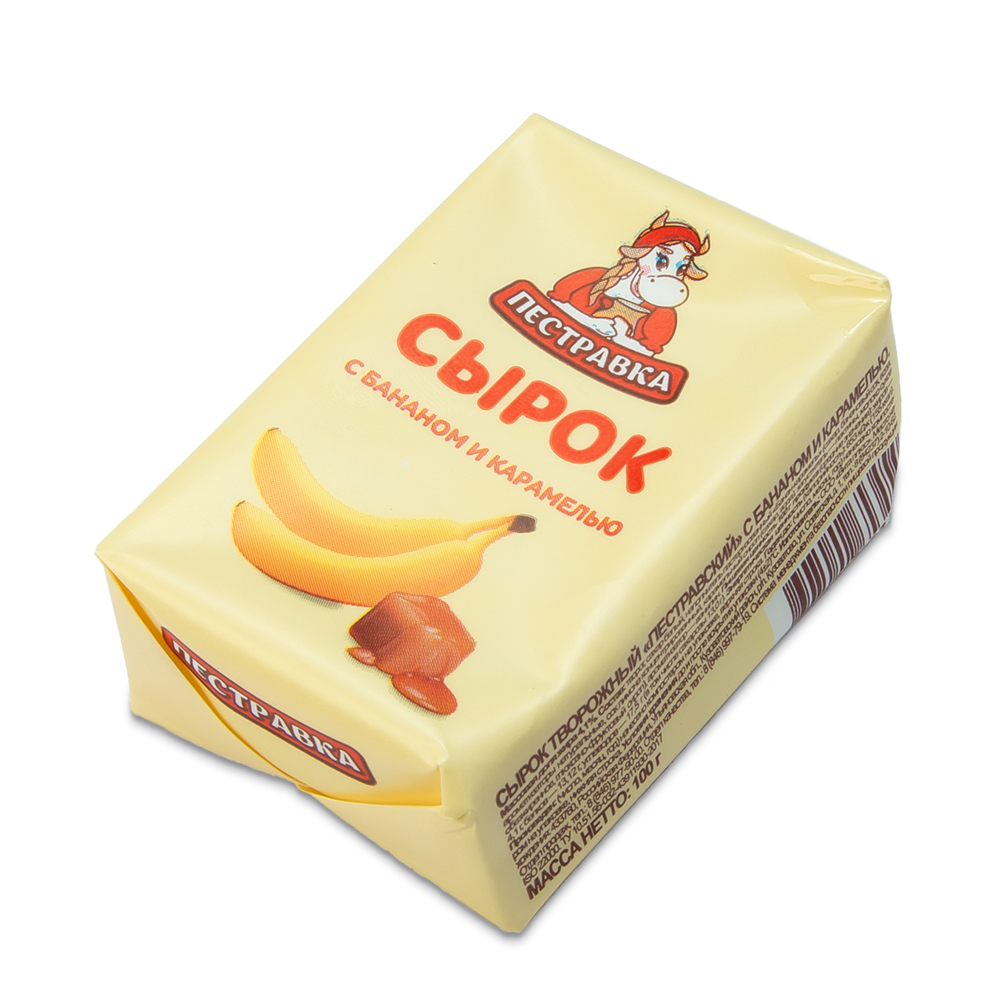 БЗМЖ СЫРОК ТВОРОЖНЫЙ ПЕСТРАВКА С БАНАНОМ-КАРАМЕЛЬЮ 4.5% 100ГР КОРРЕКС
