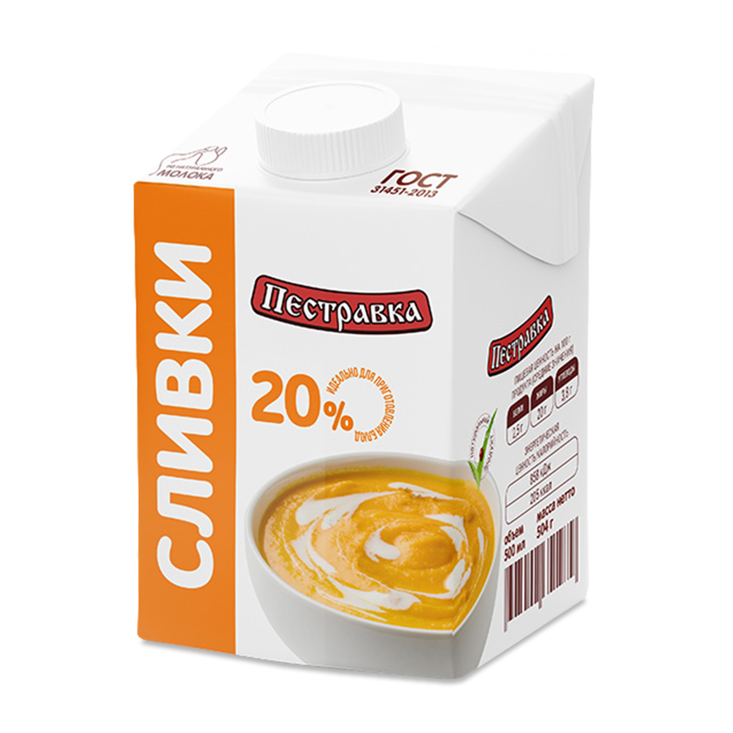 БЗМЖ СЛИВКИ ПЕСТРАВКА 20% УЛЬТРАПАСТ 500ГР