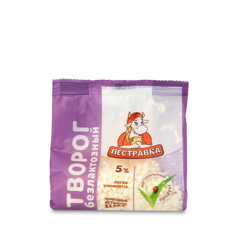 Безлактозный творог Пестравка - натуральный рассыпчатый творог, изготовленный из молока с использованием ферментного препарата лактаза, расщепляющего лактозу. Творог БЕЗ ЛАКТОЗЫ (содержание лактозы менее 0,01%) ЛЕГКО УСВАИВАЕТСЯ и обладает всеми полезными свойствами традиционного творога: богат белком, кальцием, поддерживает здоровье костей и мышц. Классическая жирность 5% делает его идеальным для употребления на завтрак, в качестве перекуса или для использования в готовке. Легкая сладость, которую творог приобретает в процессе изготовления, позволяет использовать его в десертах и выпечке, пробовать новые варианты любимых блюд или употреблять как самостоятельный продукт без добавления сахара.