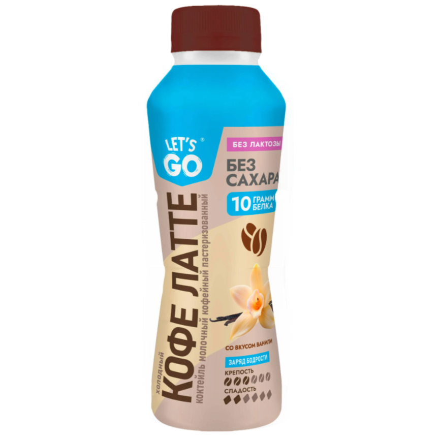 БЗМЖ КОКТЕЙЛЬ МОЛОЧНЫЙ LETS GO БЕЗЛАКТОЗ КОФЕ ЛАТТЕ ВАНИЛЬ 330 МЛ ПЭТ