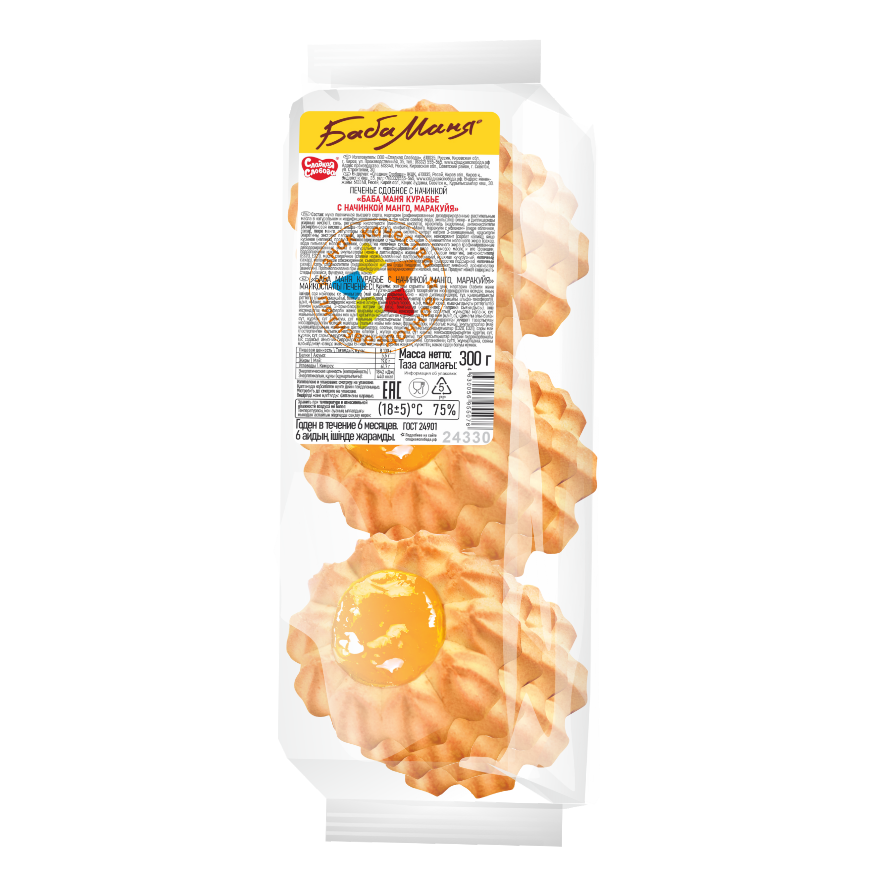 ПЕЧЕНЬЕ СС БАБА МАНЯ КУРАБЬЕ С НАЧИНКОЙ МАНГО/МАРАКУЙЯ 300ГР