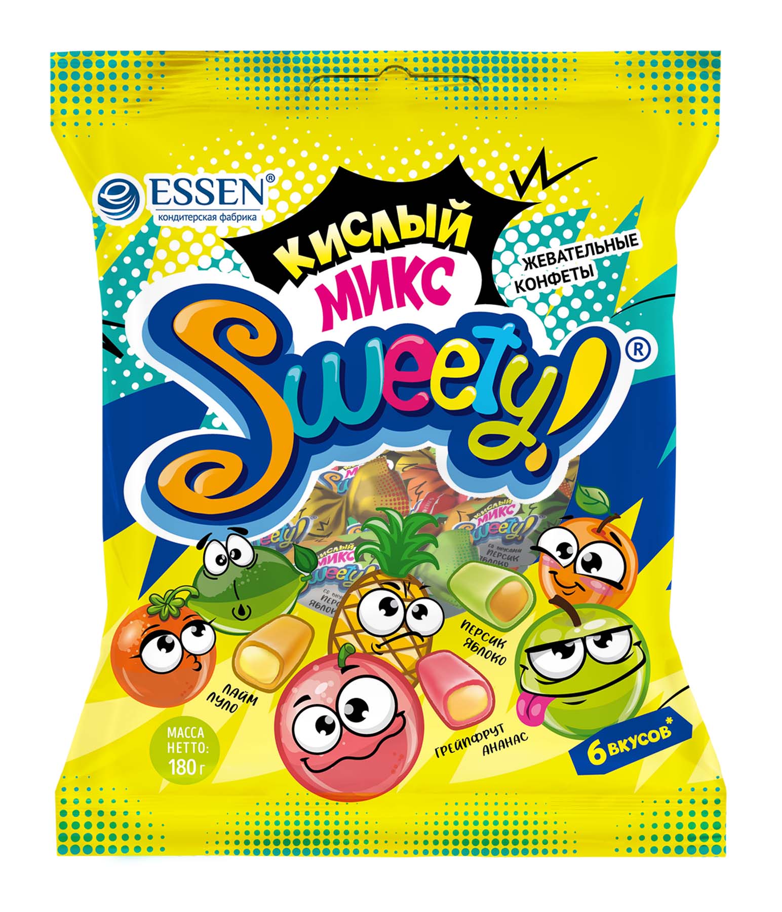 КОНФЕТЫ ЭССЕН SWEETY ГРЕЙПФРУТ/АНАНАС, ЛАЙМ/ЛУЛО, ПЕРСИК/ЯБЛОКО 180ГР
