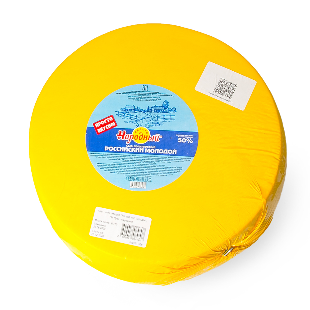 СЫР РОССИЙСКИЙ МОЛОДОЙ 50% ПРОСТОНАРОДНЫЙ /ВЕС