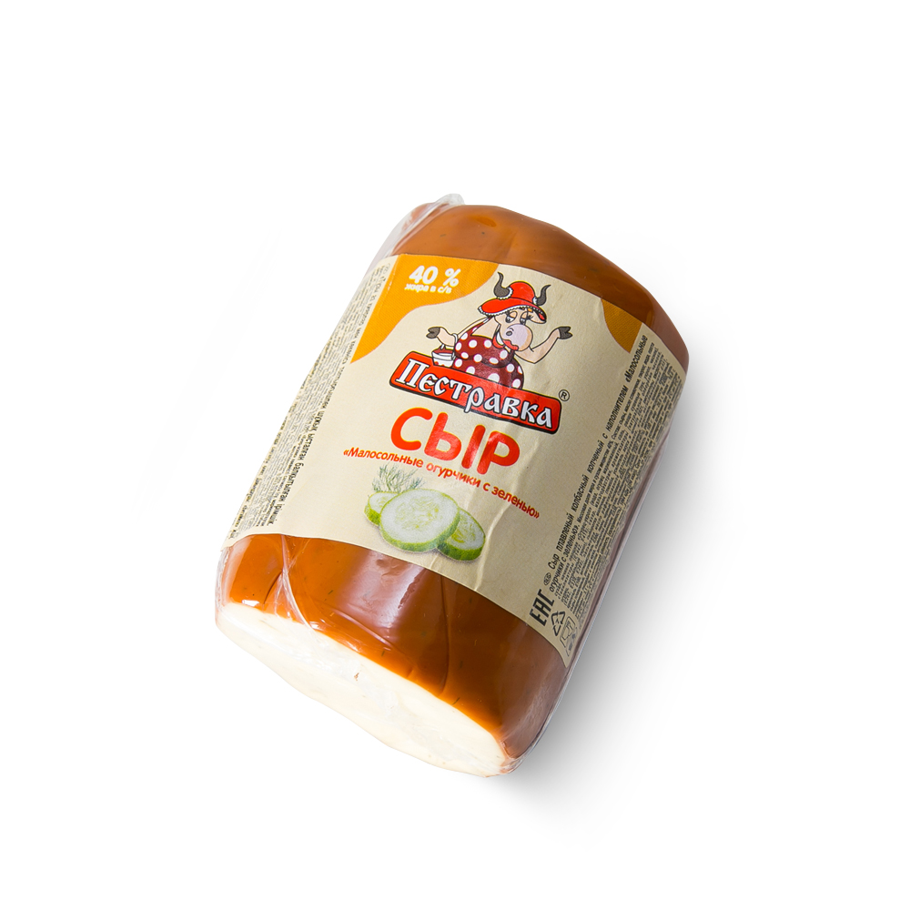БЗМЖ СЫР КОЛБАСНЫЙ 40% ПЕСТРАВСКИЙ С ОГУРЧИКАМИ И ЗЕЛЕНЬЮ /ВЕС