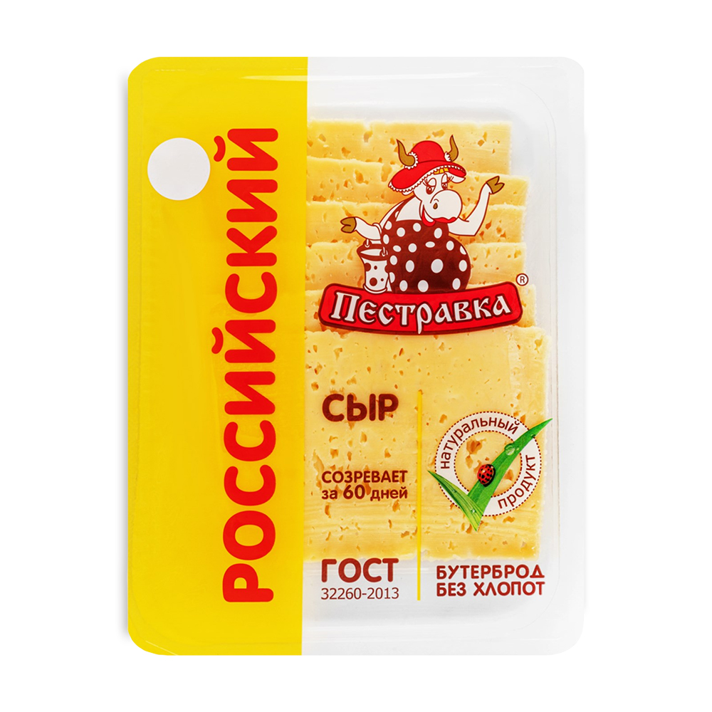 БЗМЖ СЫР ПЕСТРАВКА РОССИЙСКИЙ 50% НАРЕЗКА 125ГР