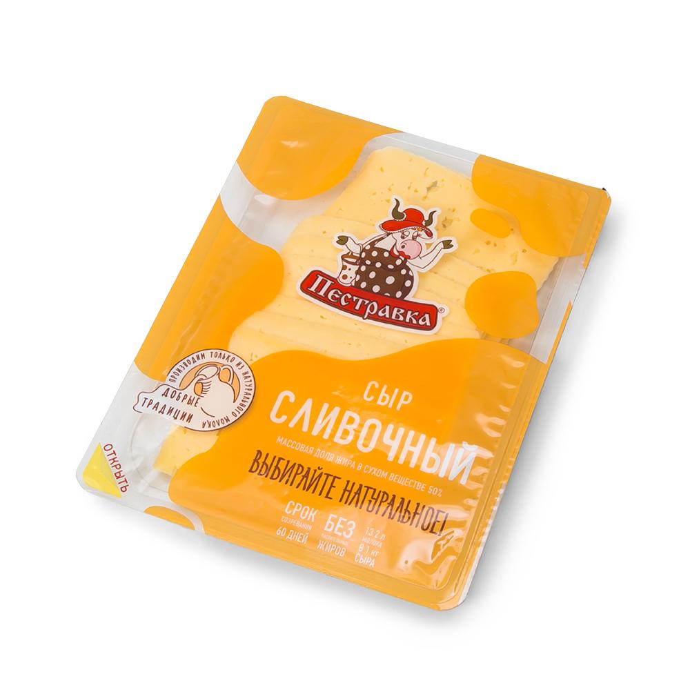 БЗМЖ СЫР ПЕСТРАВКА СЛИВОЧНЫЙ 50% НАРЕЗКА 125ГР