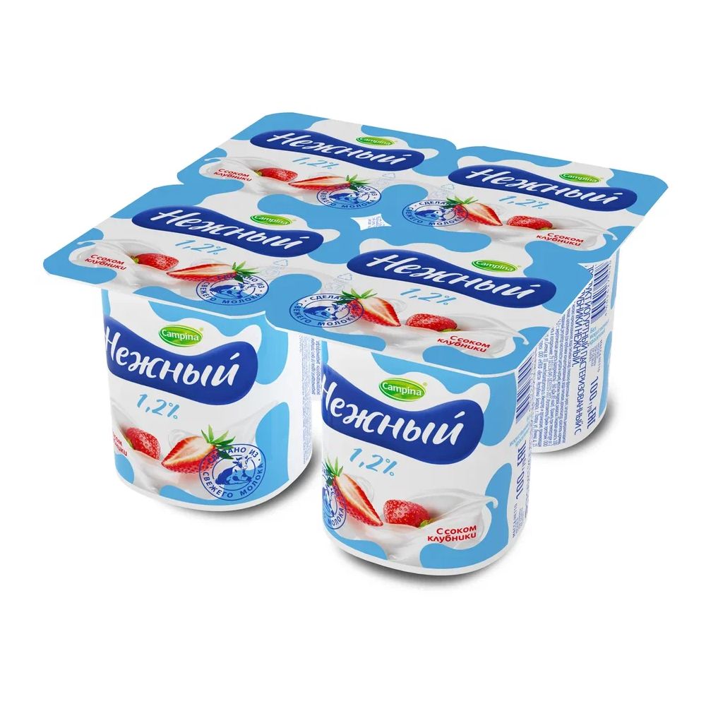 БЗМЖ ЙОГУРТ НЕЖНЫЙ С СОКОМ КЛУБНИКА 1,2% 100ГР
