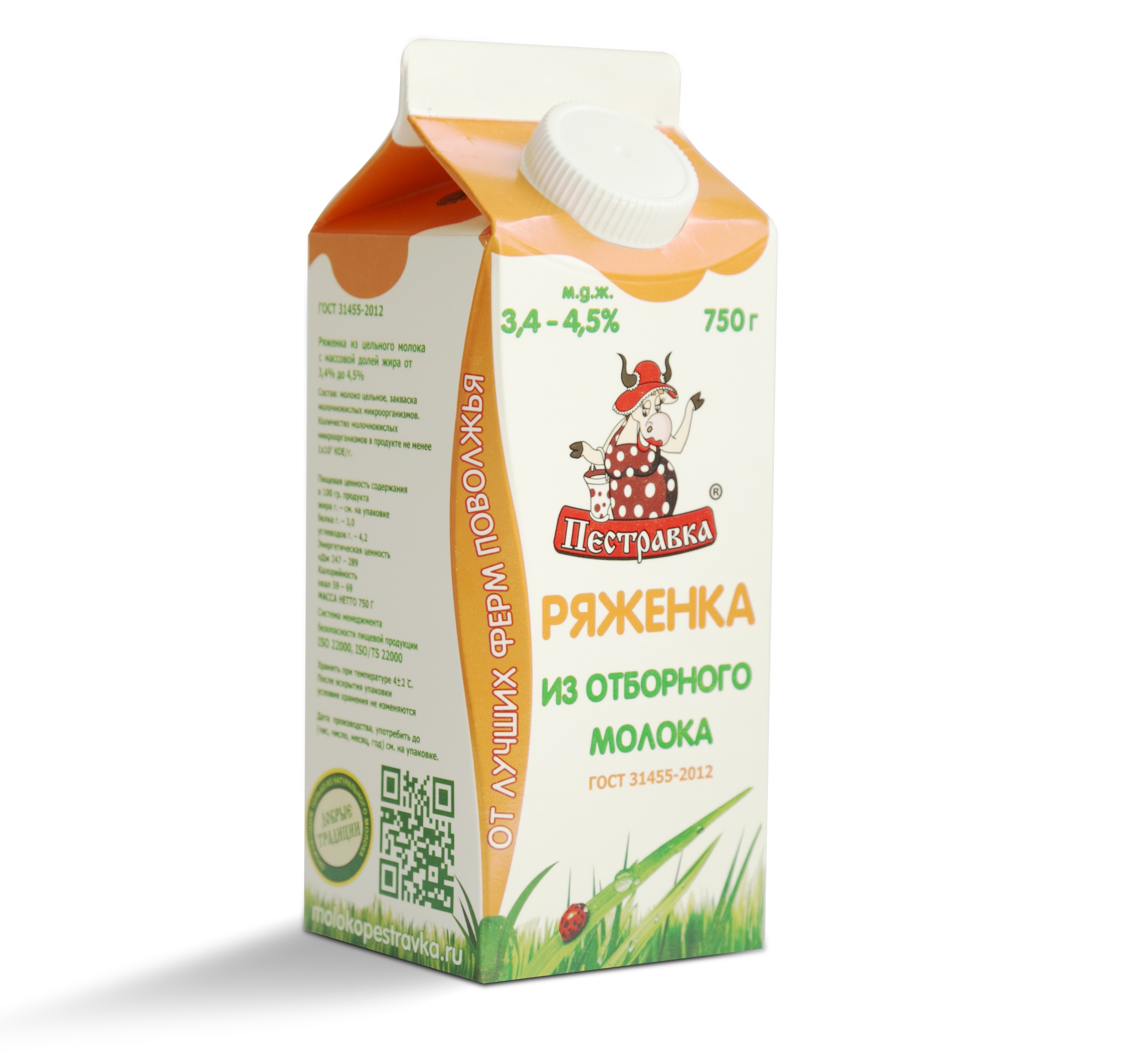 БЗМЖ РЯЖЕНКА ПЕСТРАВКА ОТБОРНАЯ 3,4-4,5% 750ГР ПЭТ