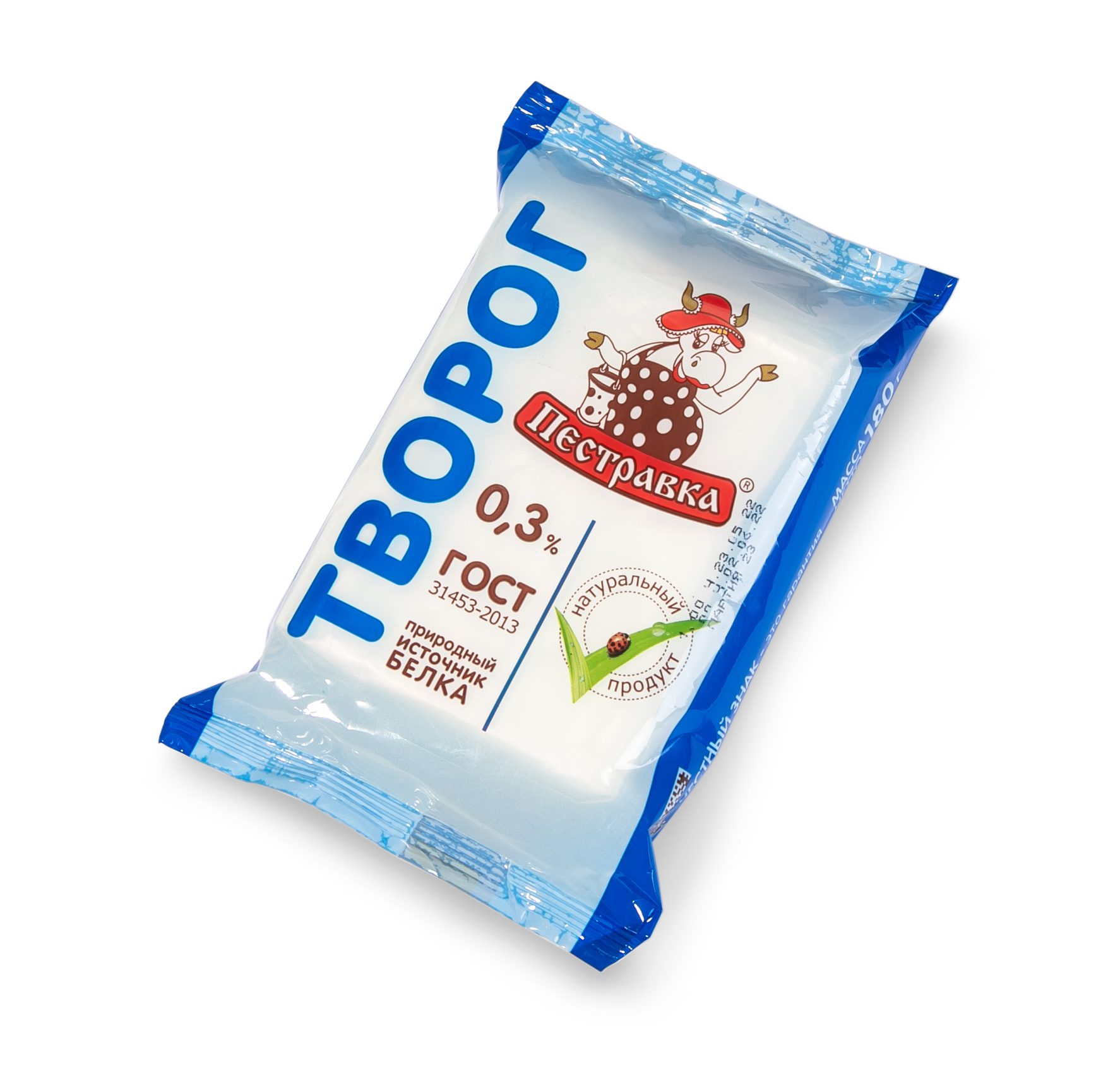 БЗМЖ ТВОРОГ ПЕСТРАВКА 0,3% 180ГР ФЛОУ-ПАК