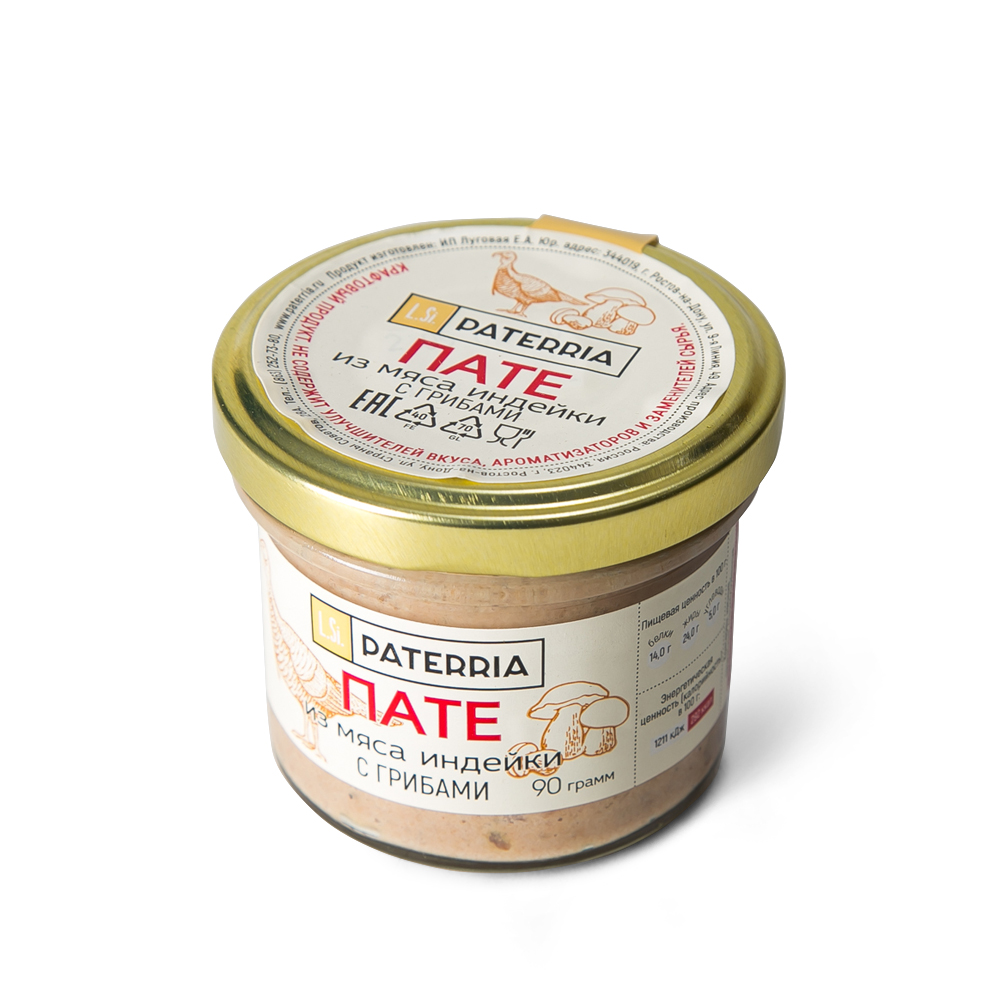 ПАТЕ ИЗ МЯСА ИНДЕЙКИ С ГРИБАМИ 90ГР