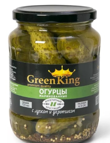 ОГУРЦЫ МАРИНОВАННЫЕ 6-9СМ ГРИН КИНГ СТ/Б 720МЛ
