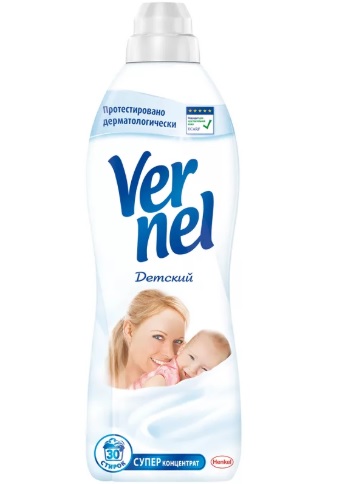Кондиционер для белья Vernel Детский придает белью невероятно нежный аромат и подходит для стирки детского белья. Продукт дерматологически протестирован и рекомендован Европейским центром исследования проблем аллергии (ECARF) для стирки белья людей с чувствительной кожей. Не содержит красителей. Продукт придает белью невероятную мягкость, делая его приятным на ощупь. Гладить белье становится намного легче, а сохнет оно намного быстрее. Средство также обладает антистатическим эффектом. Благодаря удобной крышке-дозатору Вы всегда будете знать, сколько средства необходимо добавить. Концентрированного средства хватает на длительное время (30 стирок). 4 свойства кондиционера для белья Vernel: - придает мягкость, - придает приятный аромат, - обладает антистатическим эффектом, - облегчает глажение. Состав: 5-15% катионные ПАВ; <5% отдушка, консервант, пеногаситель; глицерин, вода