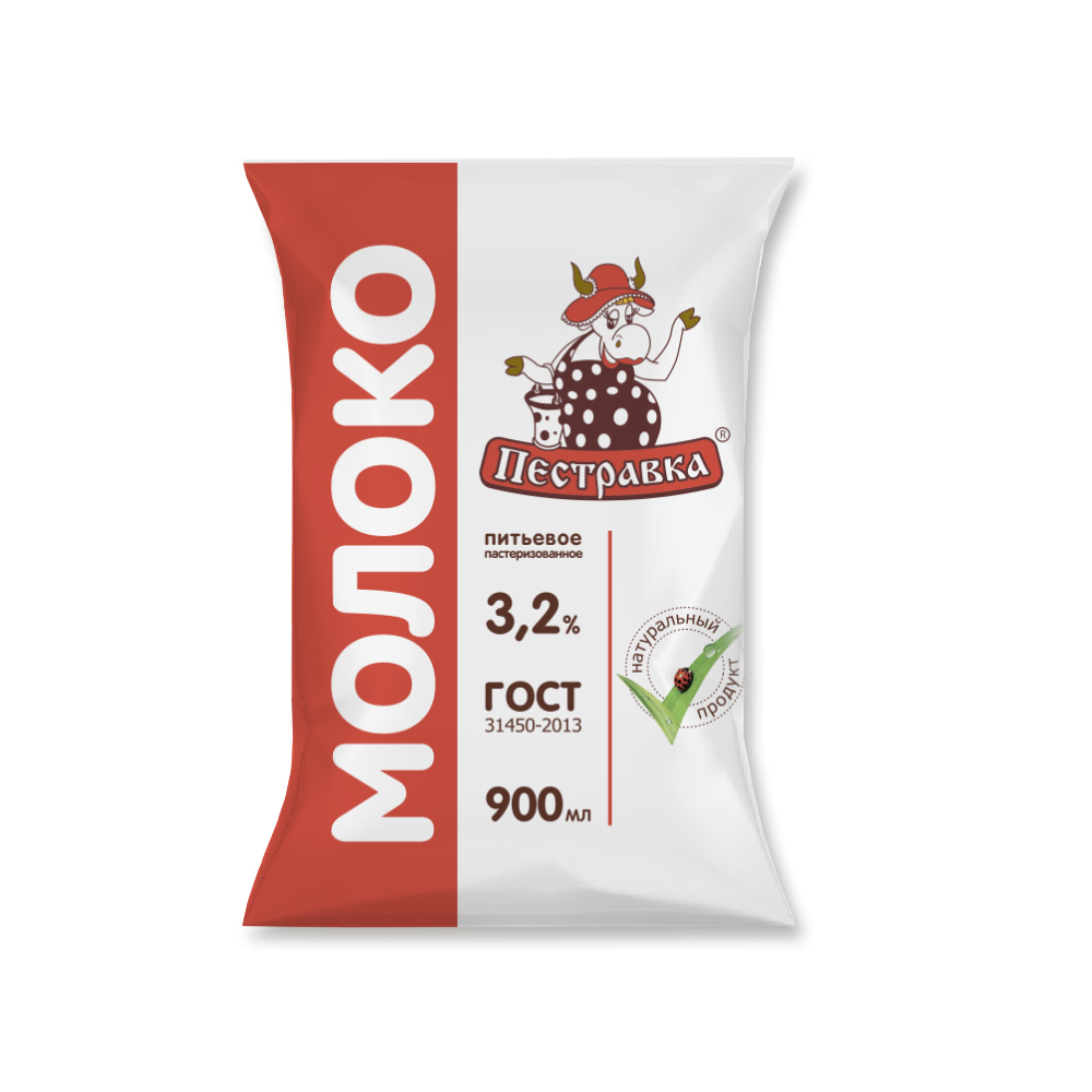 БЗМЖ МОЛОКО ПЕСТРАВКА 3,2% 924ГР Ф/П